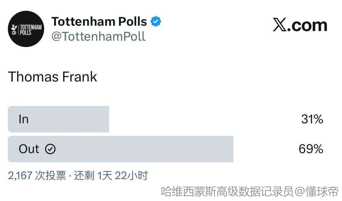 弗兰克就从来没有证明过自己,目前只赢了五场联赛,除了哪位热刺教练都能赢的曼城,剩下的队伍排名是是13、17、18、19,还打平了20。全是下半区球队,胜率更是倒数第二,弗兰克早就不值得热刺信任了