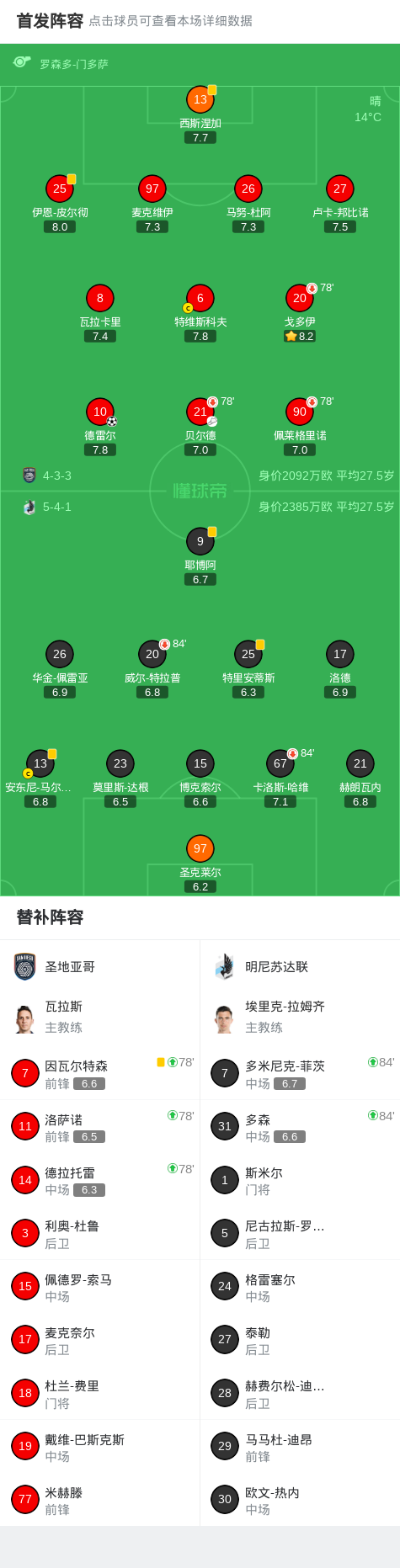 第72分钟,圣地亚哥球员贝尔德助攻德雷尔打入一球。