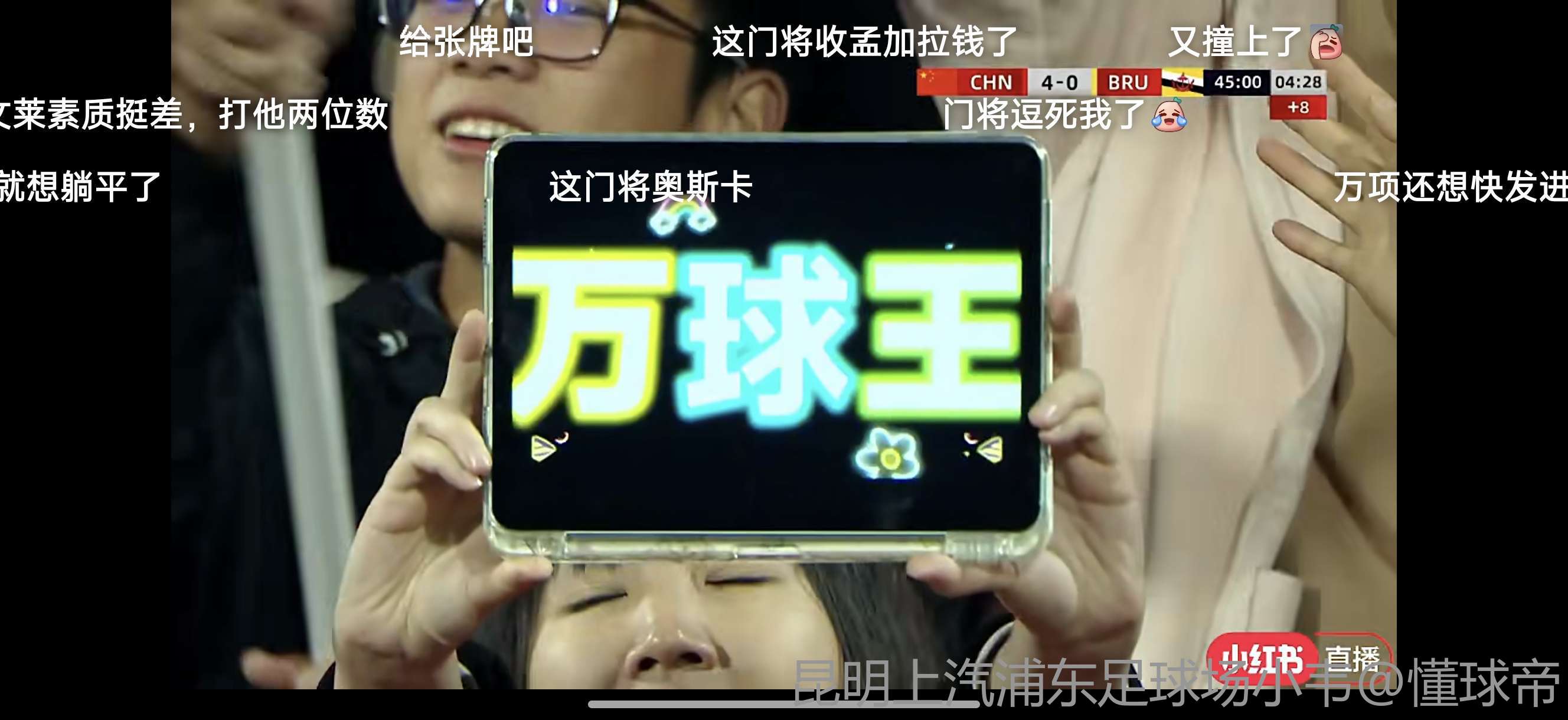 第45+4分钟,两传一射,万项门前抢点破门,中国队4-0领先