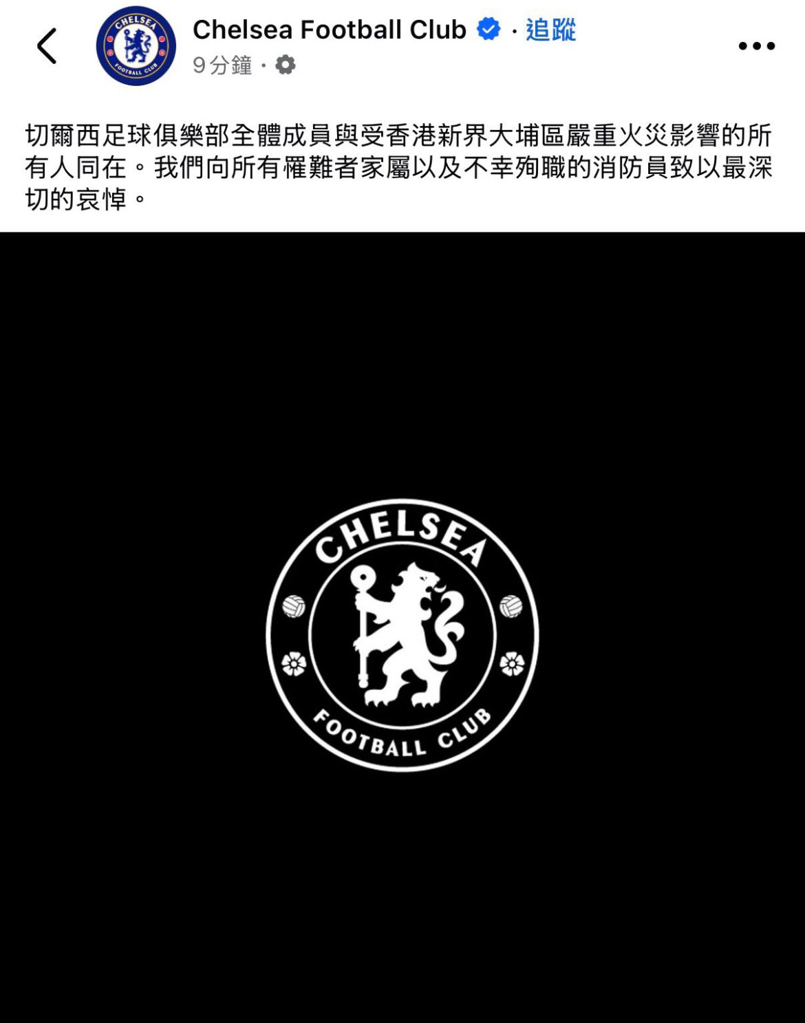 中国香港足球总会对大埔宏福苑火灾深表哀痛。