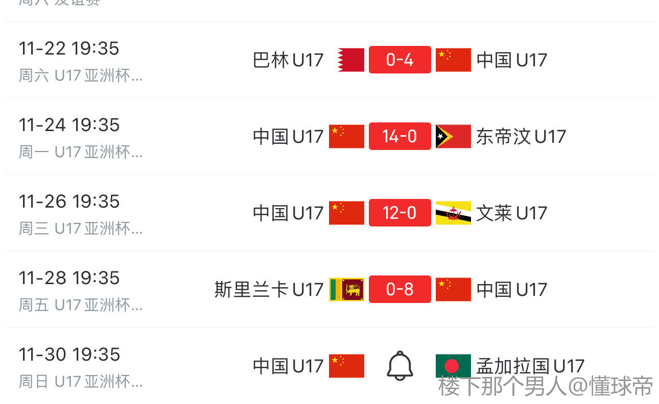 北京时间11月29日,U17亚洲杯第5轮,国少对阵孟加拉国U17的转播信息公布,CCTV5+转播本场比赛。