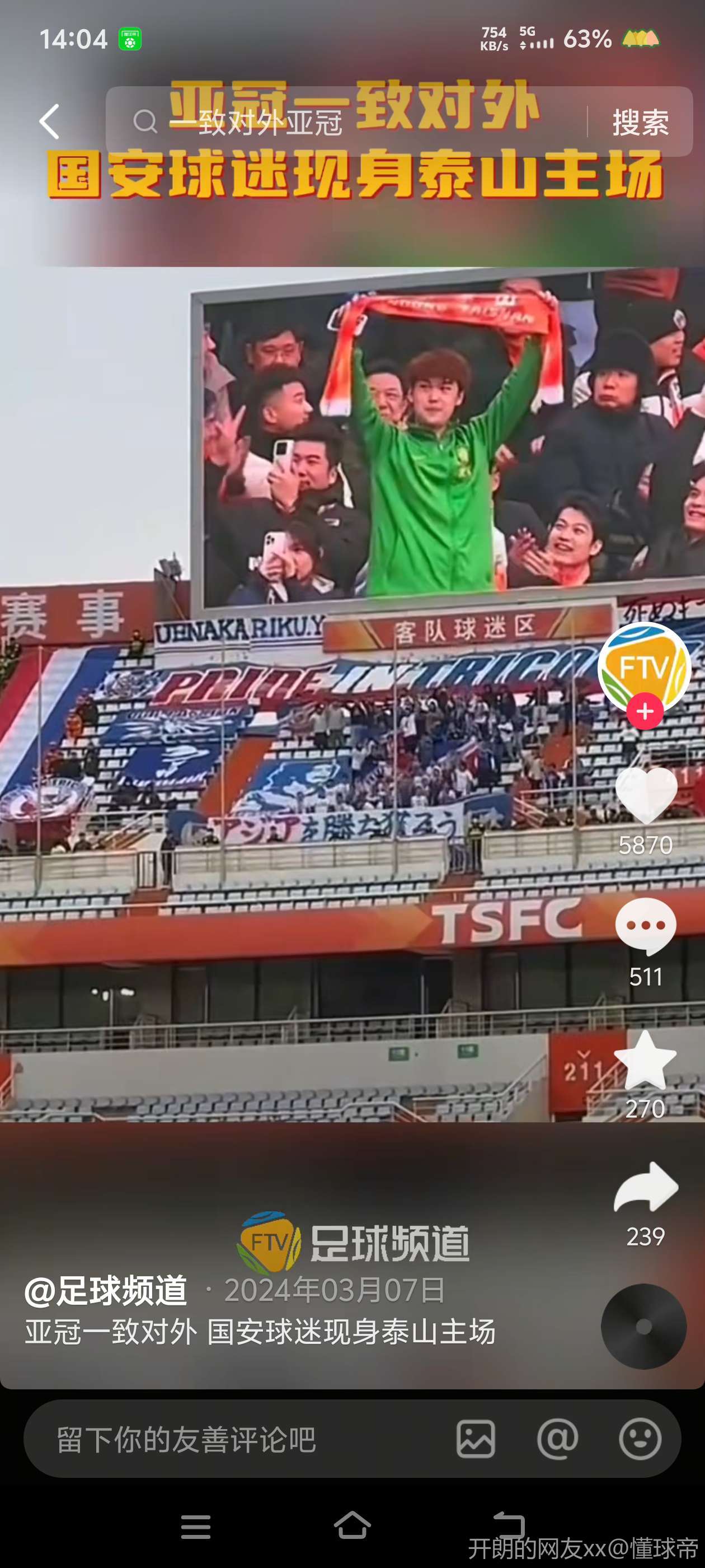 这不就是为了博眼球吗还说国安球迷格局小,你想支持你穿个国安的队服拿个泰山的围巾人都让你上来了,哪怕你不穿国安球衣正常服装都行
