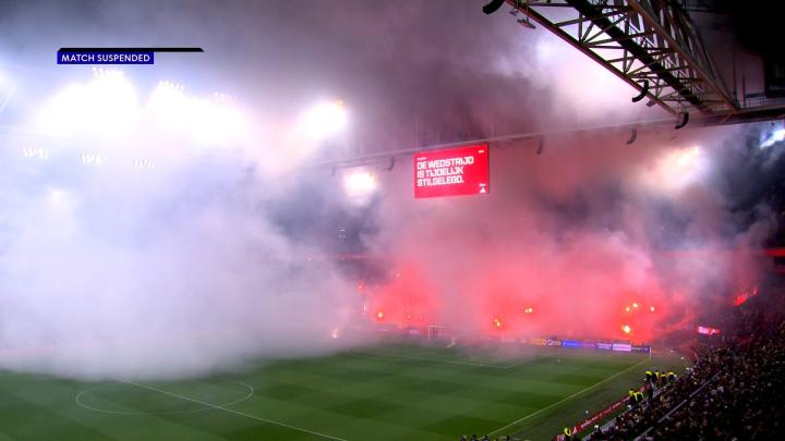 在被中断43分钟后,本场比赛才得以重新开始。主裁判已经表示,如果再有此类情况,比赛将被彻底终止。不过他的表态似乎并没有起到作用,比赛恢复之后看台上又再次燃起了烟花。最终在和阿姆斯特丹市长协商之后,主裁判决定终止本场比赛。