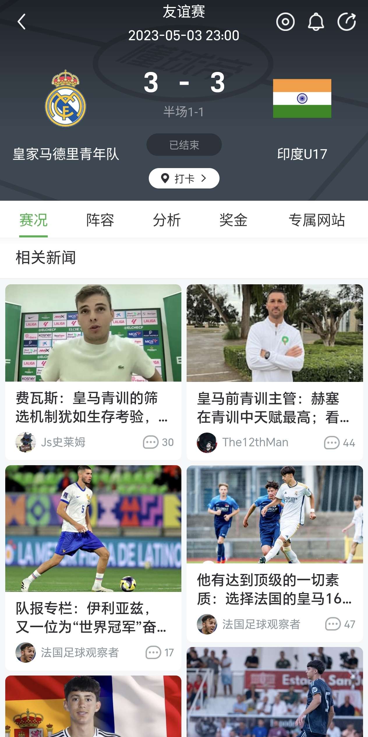 虽然不是同一只U17,不过一坤年前的这只印度U17可以嘛,踢平皇马梯队也很有水平