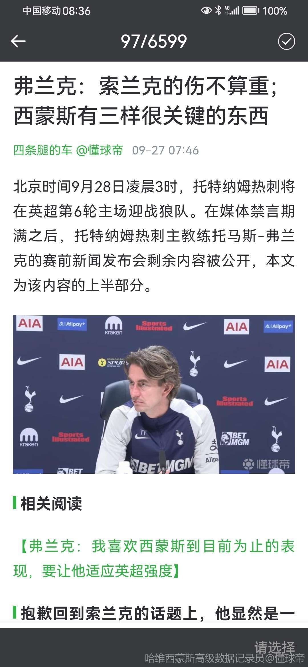 英超第15轮,热刺将主场对阵布伦特福德,赛前,即将带队面对旧主的热刺主帅托马斯-弗兰克出席新闻发布会接受媒体提问。