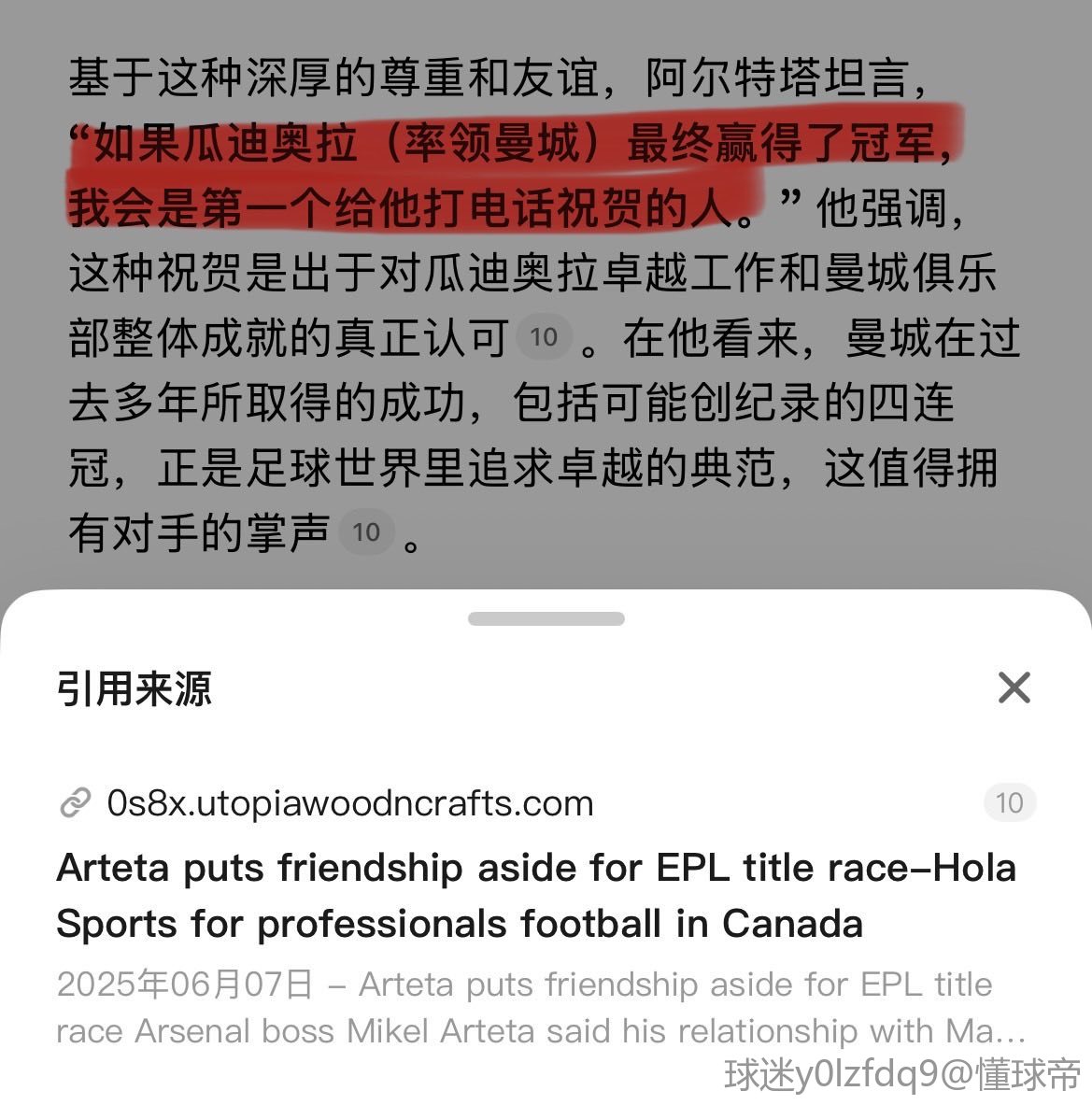 足球里,你可能半场3-0领先,但对手一次射门都没有;但下一秒你犯两个错误,被连追两球。我们这些年都经历过。我希望球队不断成长、不断做好每一步。这就是生活。曼城会输?会的,这很正常。这个俱乐部以前很多年都没有争冠机会,现在我们连续很多年在争冠。我们要继续尽可能保持。如果阿森纳最终夺冠,我会第一个给阿尔特塔打电话祝贺,就像他过去所做的那样。我想要的是球队不断提升,而不是每次失败都被当成灾难。