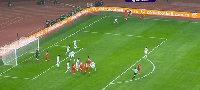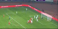 第21分钟,河南战术角球发出,阿奇姆彭越位位置头球攻门顶高