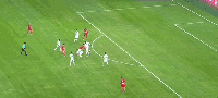第47分钟,迈达纳后点完成头球,皮球出了底线