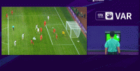第45+4分钟,法比奥转身射门,皮球击中马亚手臂,裁判正在回看VAR