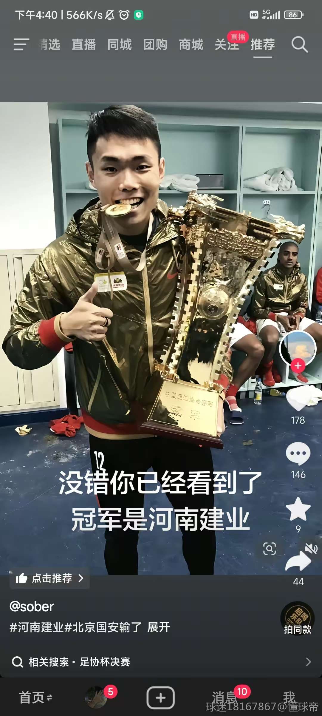 但是最近一周临近决赛,足协杯的消息开始多了起来,短视频、自媒体,看好河南的居多,甚至看到不少河南ip准备提前开香槟了。