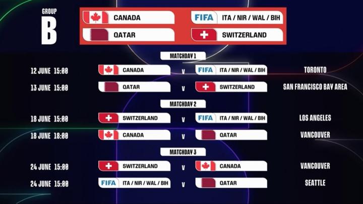 世界杯B组抽签出炉:意大利出线将和加拿大、卡塔尔、瑞士同组