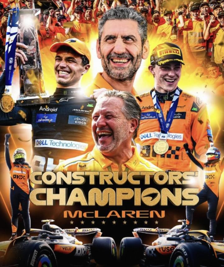 F1 2025年度车队积分榜:迈凯伦夺冠,梅奔第2,红牛第3