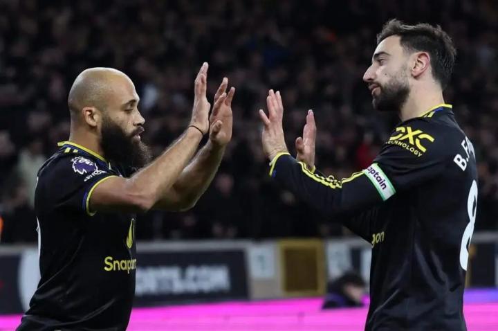 曼联队长迅速起身,机敏地将身体挡在伊曼纽尔-阿格巴杜身前护住皮球……随后这位葡萄牙人尝试了一次略显笨拙的射门。费尔南德斯的射门击中了约翰斯通,但力量足以让球缓缓滚入网窝,为曼联取得1-0领先。