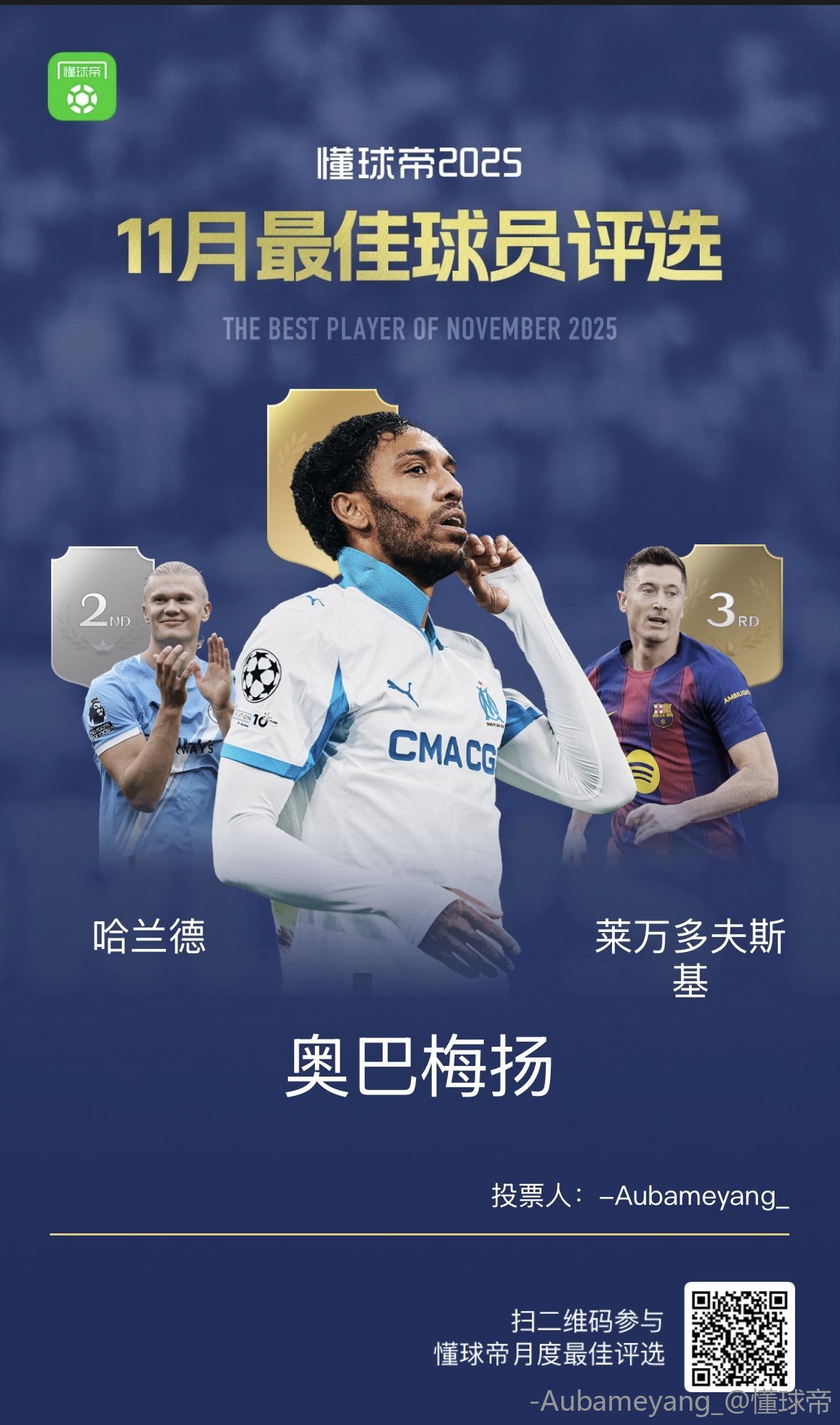 扫描下载懂球帝首页>动态> 懂球帝2025年11月MVP候选出炉:姆巴佩、哈兰德领衔,莱万在列