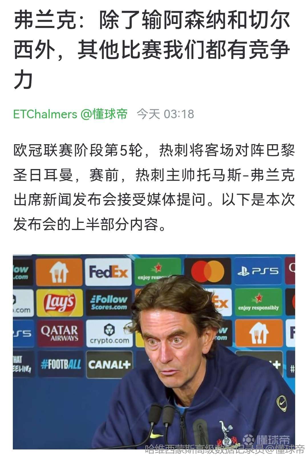 对于管理层,弗兰克也是最差的教练,糟糕的战绩和投降的风格影响球市了。上上场欧冠主场热刺球场居然有近1.5万个空座,这是热刺队史从来没有过的(上一场欧冠因为孙兴慜回来上座率有所上升)。热刺球票一直很贵,但是从没有销量如此之差的情况。。。。。此前波切蒂诺、孔蒂、波斯特科格鲁的欧战主场都是场场爆满。