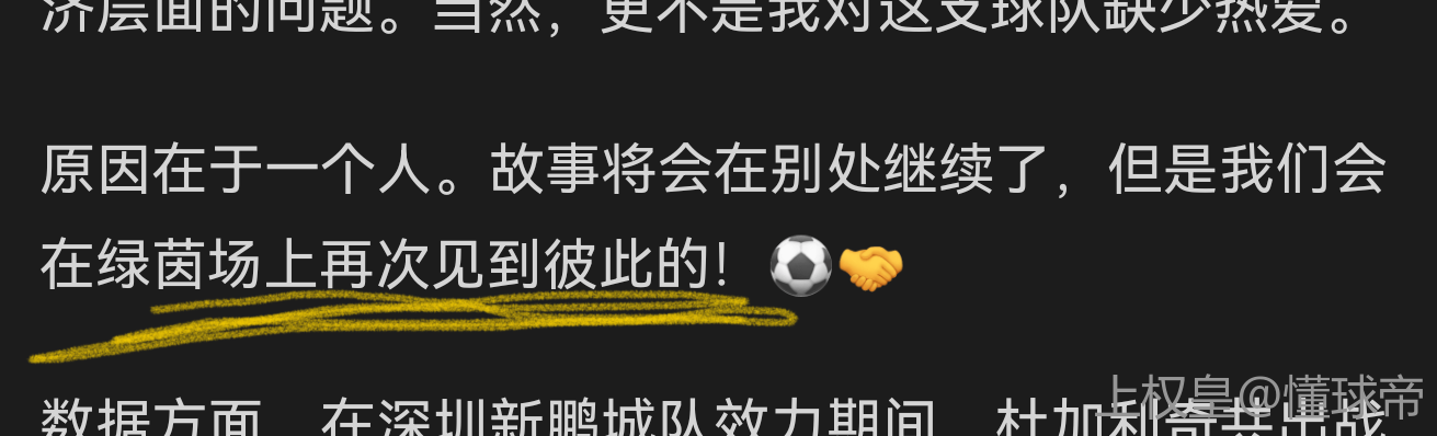 原因在于一个人。故事将会在别处继续了,但是我们会在绿茵场上再次见到彼此的!⚽️🤝