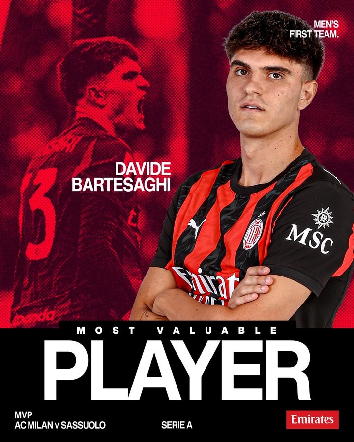 扫描下载懂球帝首页>动态> 梅开二度,巴尔泰萨吉当选与萨索洛一役米兰队内最佳球员