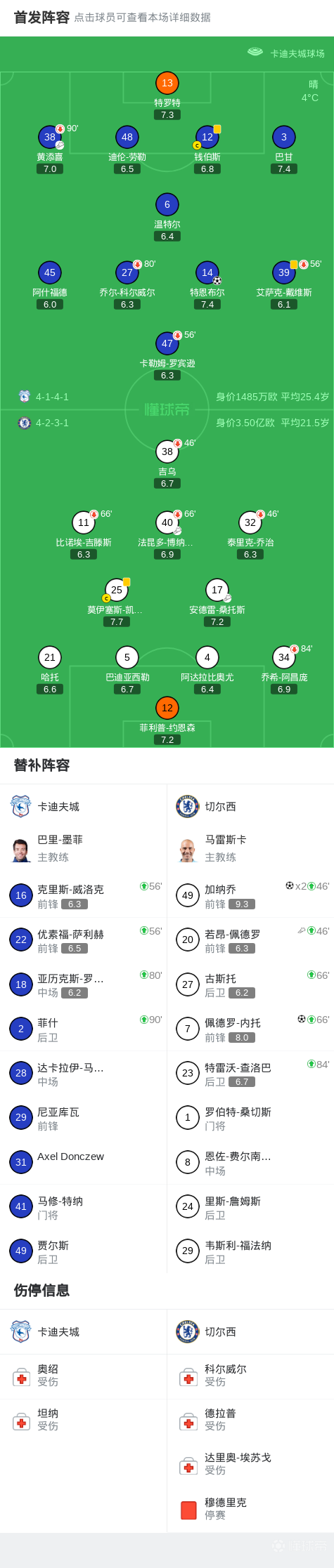 切尔西还是强的,卡迪夫今天真刀真枪的干,换任何一个英超球队来都难赢