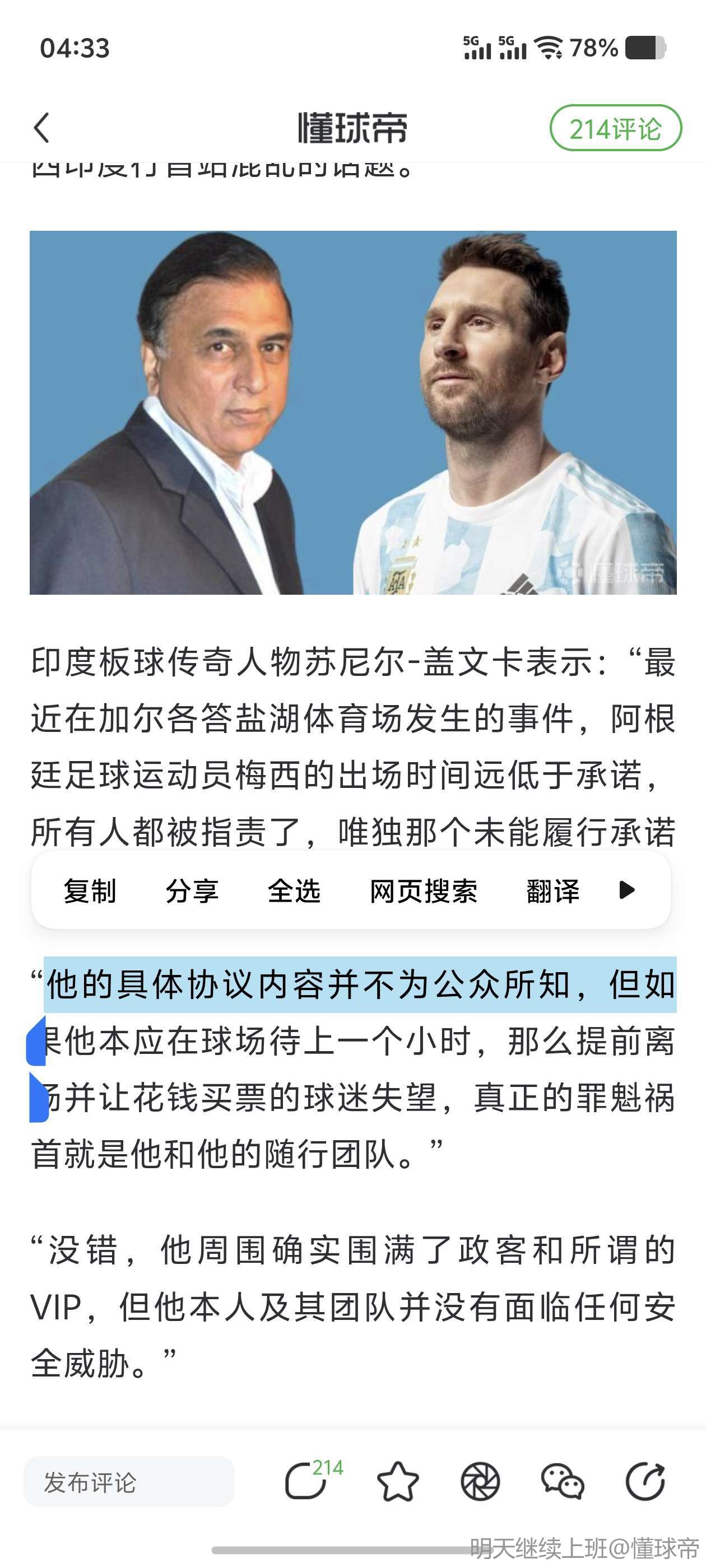 扫描下载懂球帝首页>动态> 印度板球传奇:梅西首站发生骚乱是因他的出场时间远低于承诺