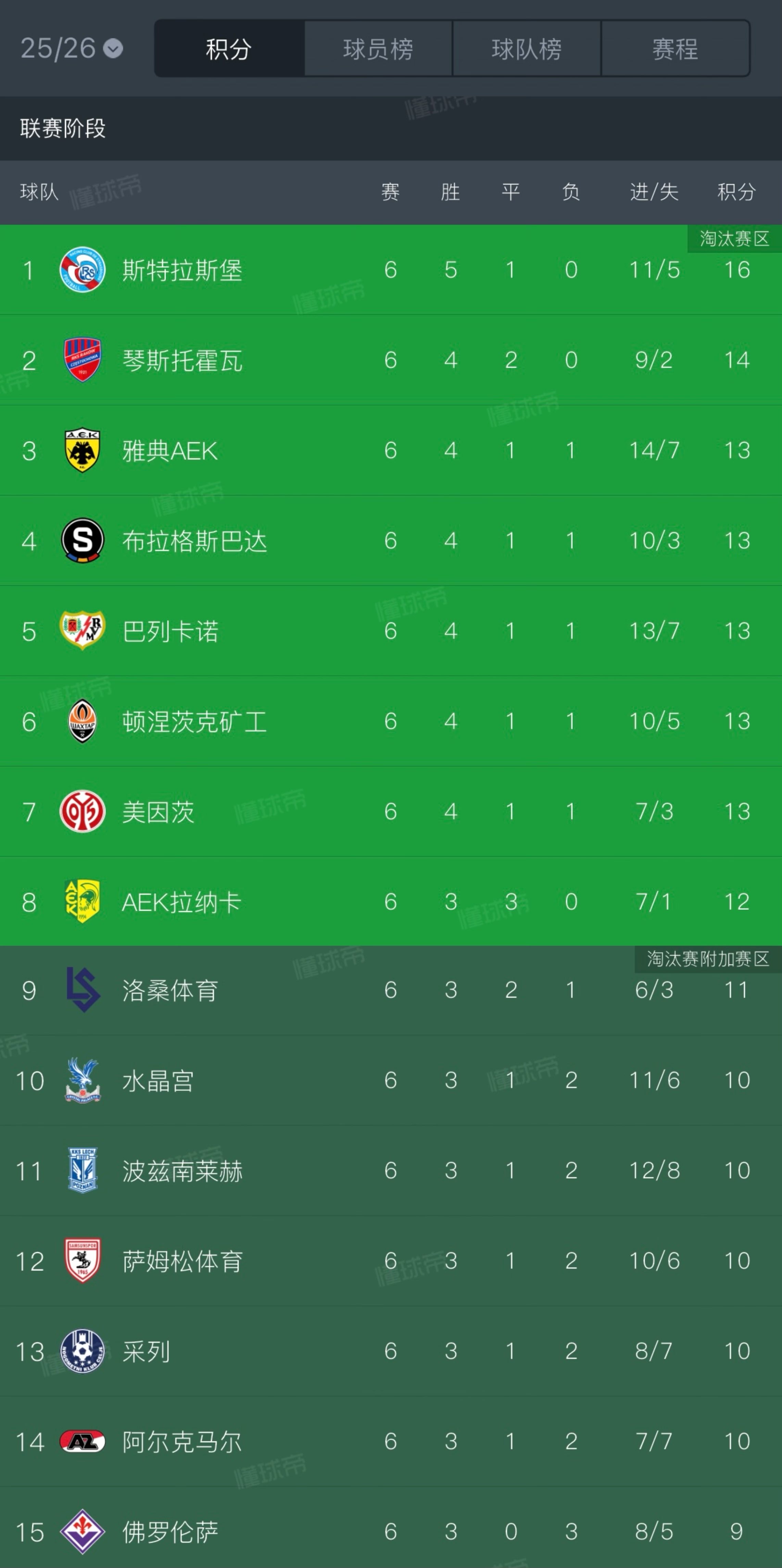 点击查看欧协联完整积分榜>>