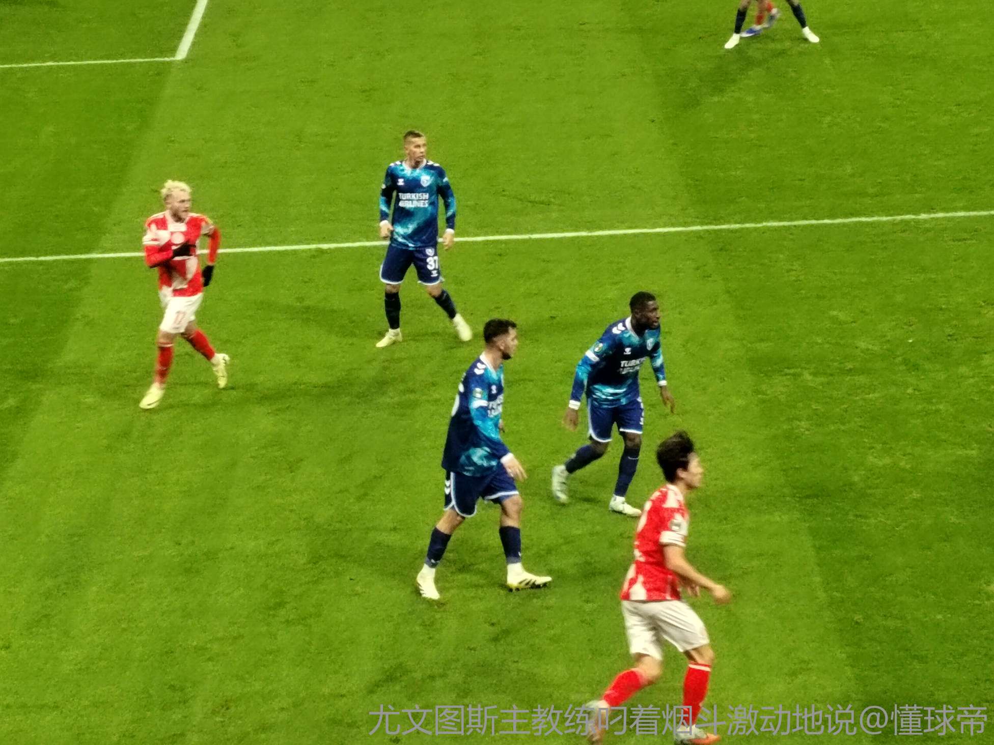 对手是土耳其联赛第6名 也是很难得有机会参加洲际赛事 球场里到处是土耳其卧底举着国旗 客队看台的土耳其球迷甚至还放烟花打炮封烟
