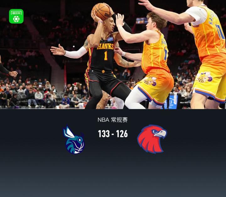 北京时间12月19日NBA 常规赛,夏洛特黄蜂对阵亚特兰大老鹰。上半场黄蜂三分手感火热18记三分追平NBA半场纪录,半场黄蜂80-69老鹰,下半场老鹰反扑最后阶段一度追至1分,最后关键时刻黄蜂鲍尔连得7分收下比赛,最终黄蜂133-126老鹰。