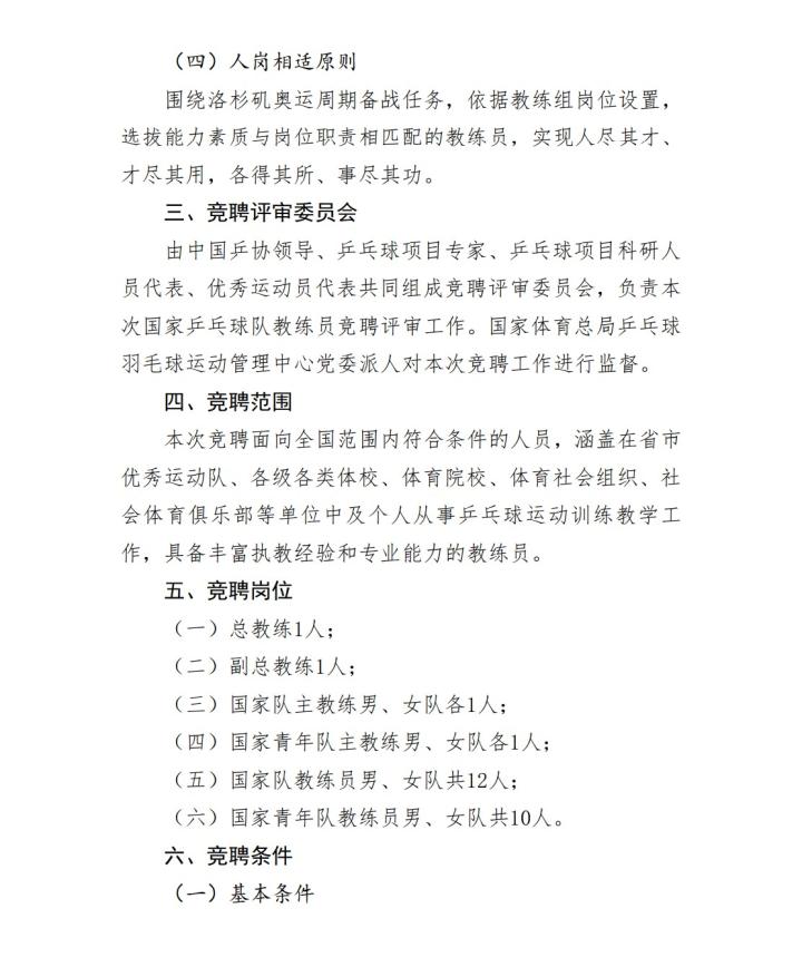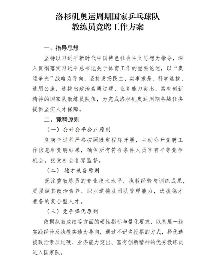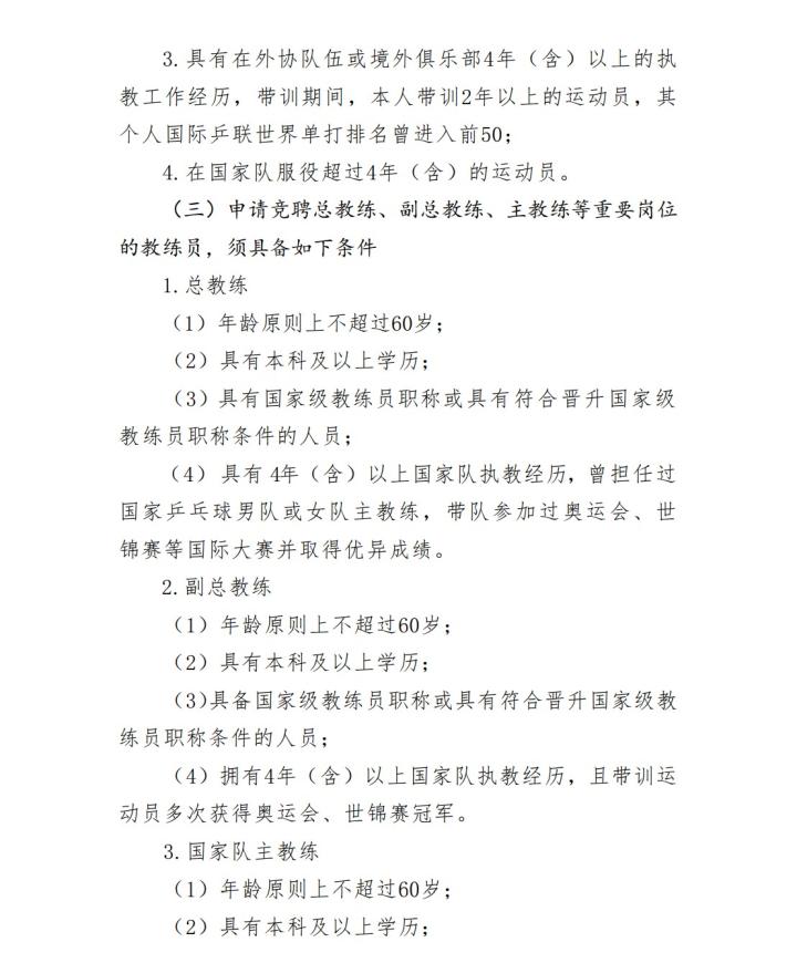 扫描下载懂球帝首页>动态> 乒协官方公开竞聘组建新一届国乒教练组,增设副总教练1人