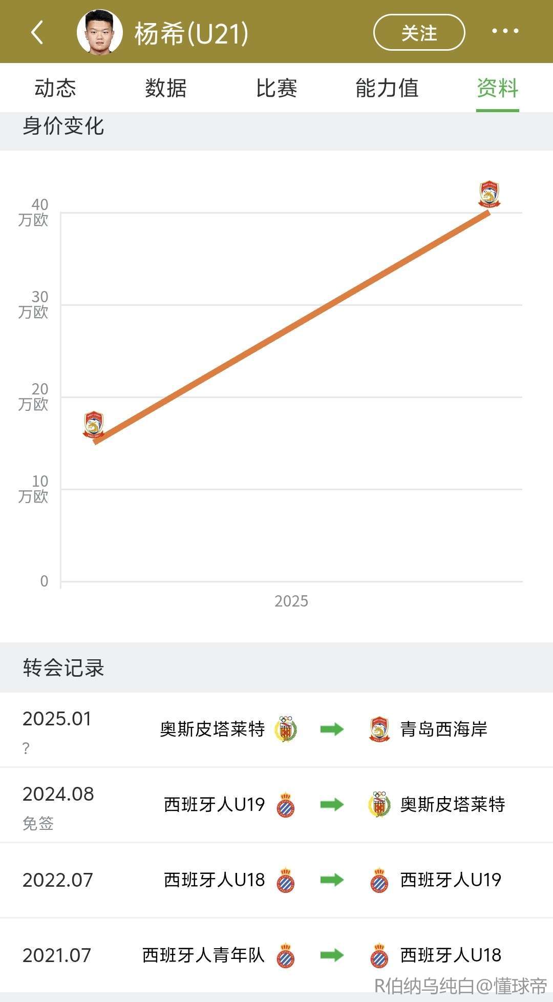 扫描下载懂球帝首页>动态> 博主:青岛西海岸边卫杨希无限接近加盟上海海港