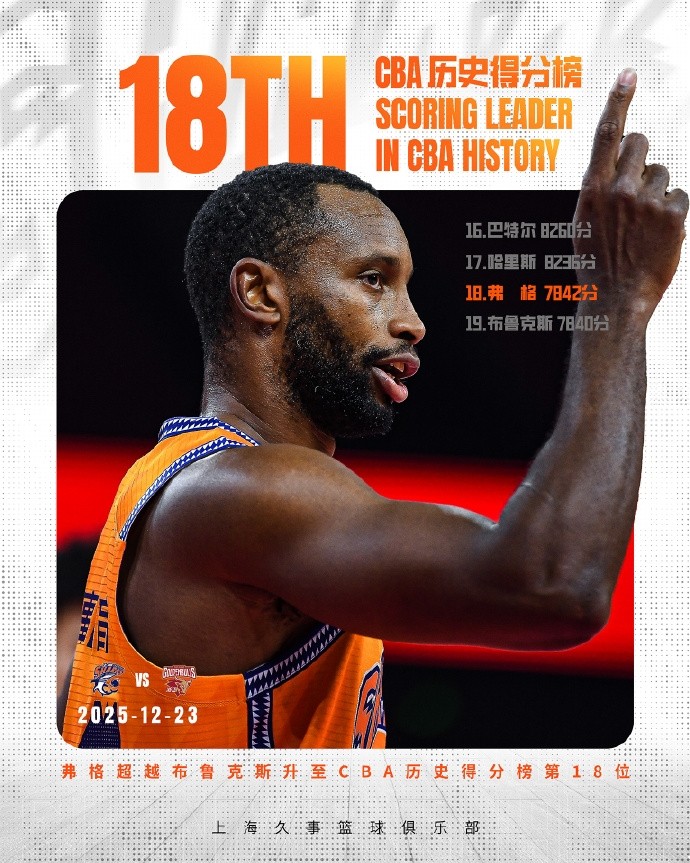 扫描下载懂球帝首页>动态> 里程碑,弗格超越马尚-布鲁克斯升至CBA历史得分榜第18位