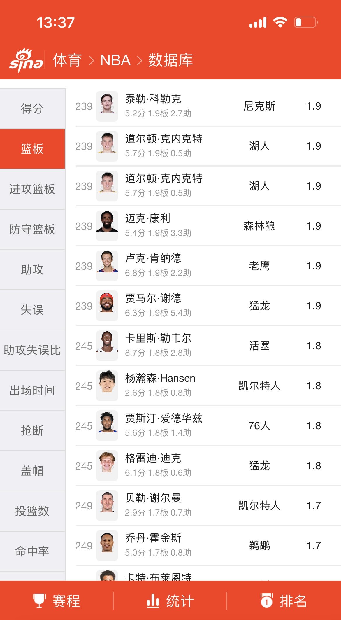 新浪体育这是搞啥啊,连所有数据排行今天都换成凯子了
