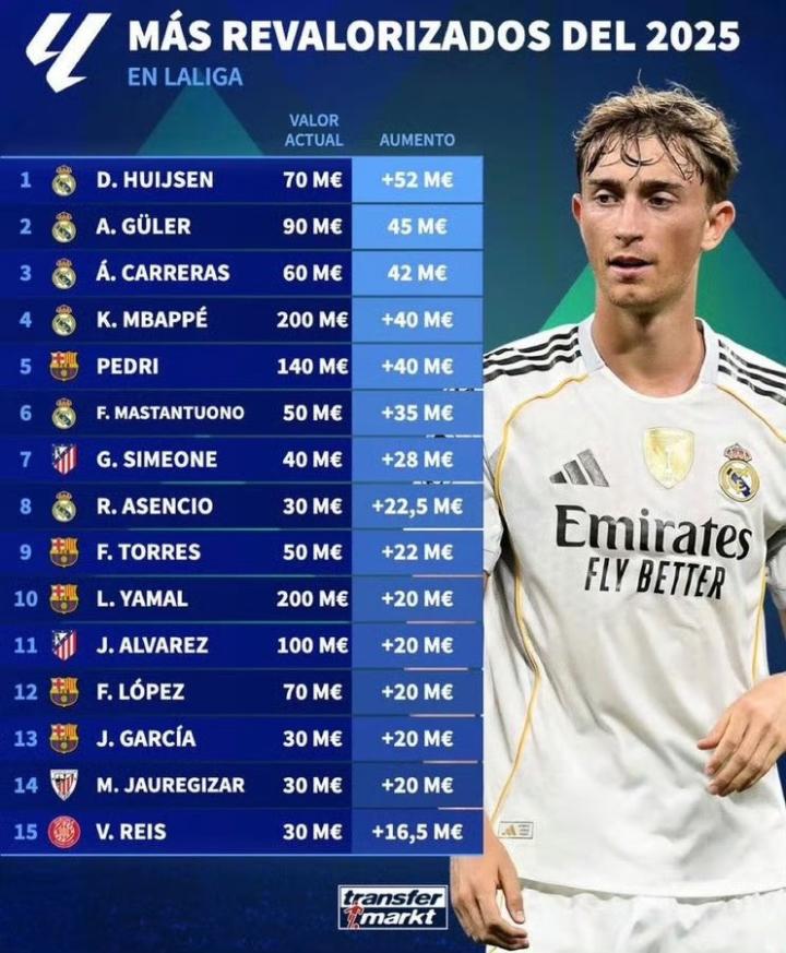 扫描下载懂球帝首页>动态> 懂球号> 2025年市场价值增幅最高的西甲球员
