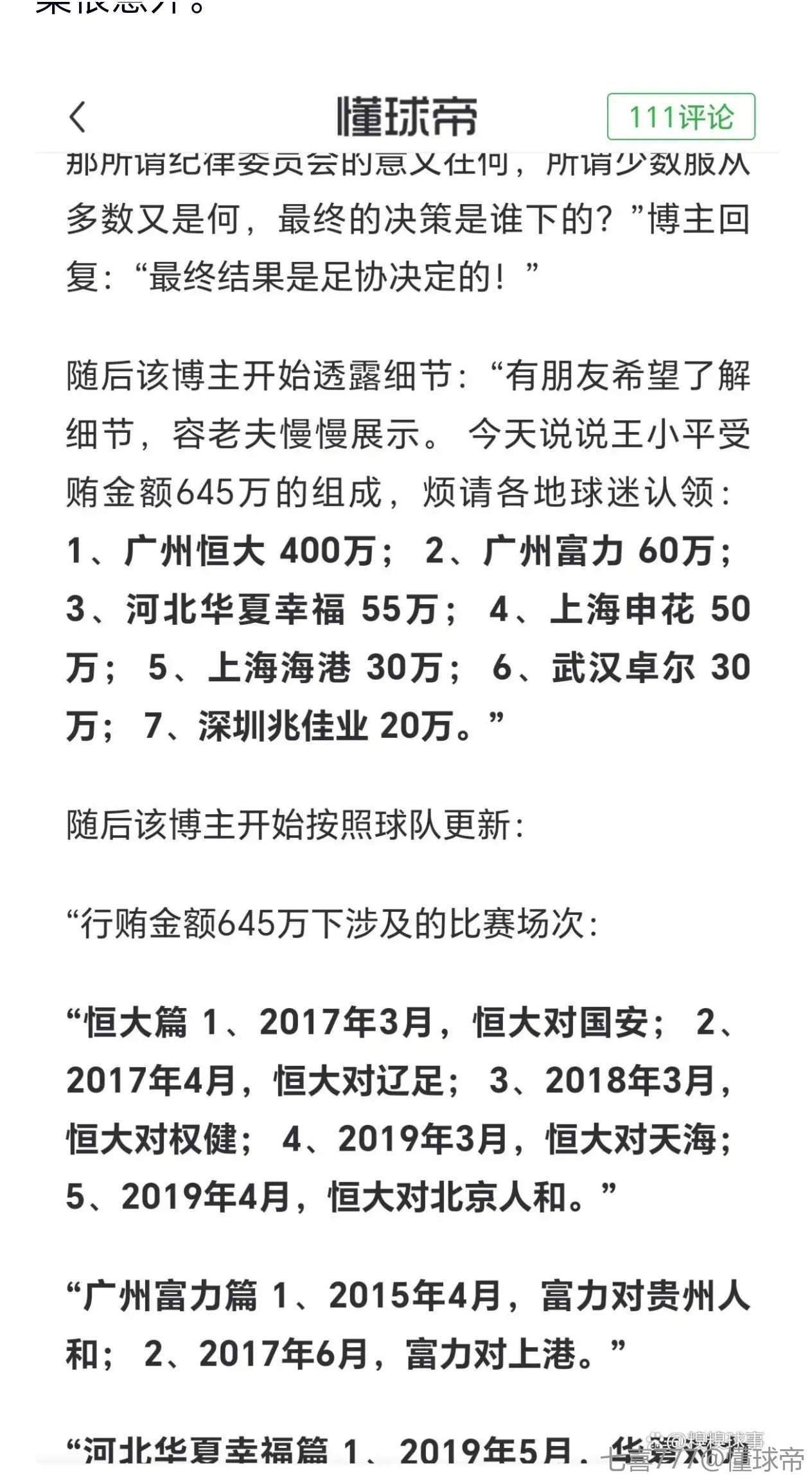 也就说恒大富力权健海港申花卓尔佳兆业相关人员诬陷他拿钱?