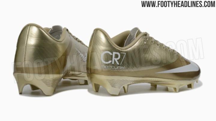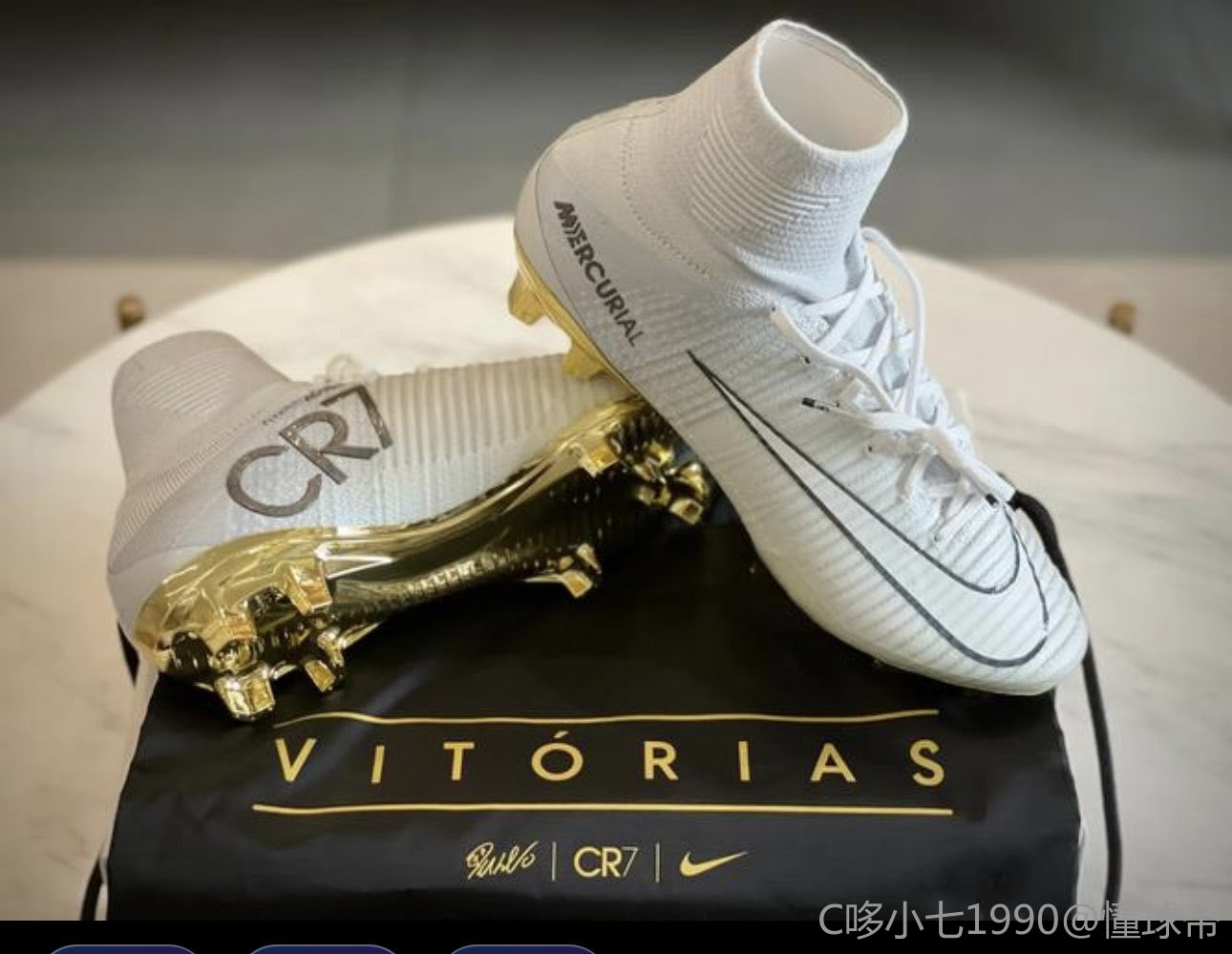 配色方面,洁白的耐克标志与金色鞋身形成了鲜明对比。而鞋跟处印有特殊的“CR7 Mercurial”字样,彰显其签名款的独特身份。
