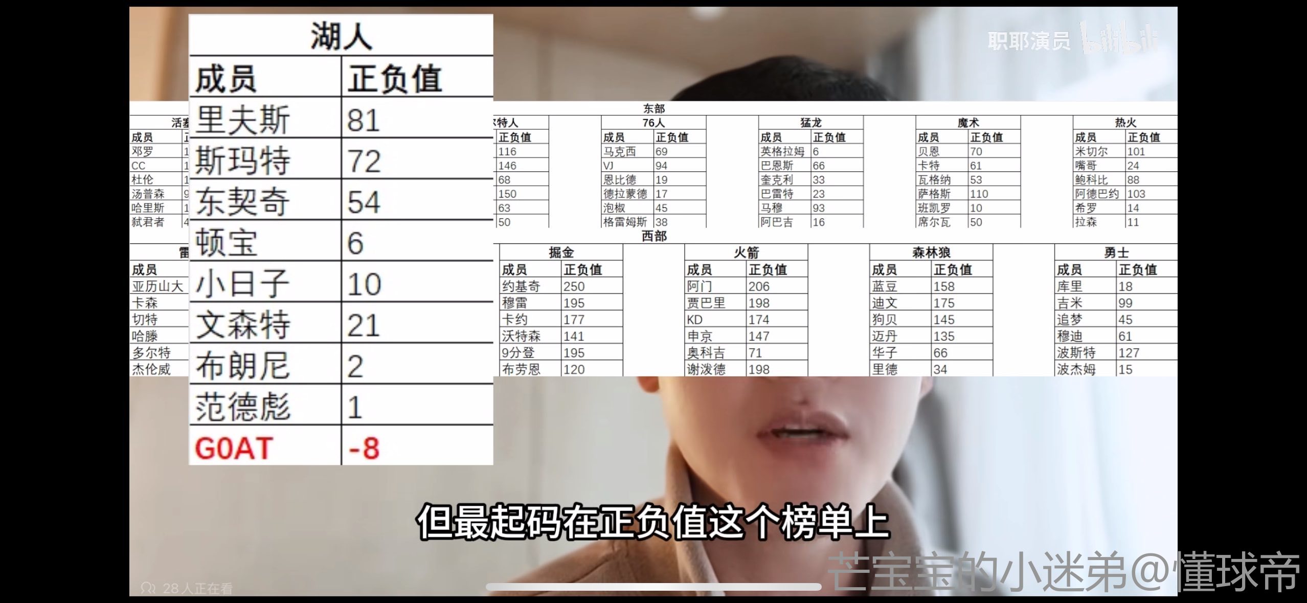给大家科普一个温知识:詹姆斯是当今联盟东西部前七球队首发+第六人,14支球队84人中唯一一个正负值是负的