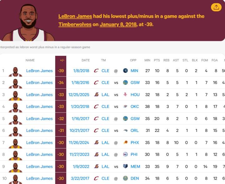 扫描下载懂球帝首页>动态> 糟透了,詹姆斯-33正负值创湖人生涯新低,也是其生涯第三低