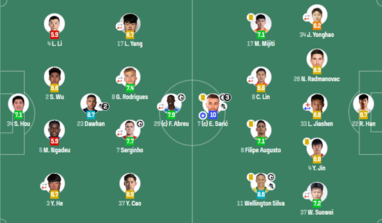 第二场,客战申花,我认为这场比赛算是涉险过关的。在本赛季大部分焦灼和被动的比赛场次中,塞蒂恩时经常能做到在正确的时间组合换人,在后手调整上收到成效(未必都做到结果上扭转战局了但确实是有效的)。在整个上半场塞蒂恩为自己的首发人选付出了进攻失衡的代价,乃比江难以撑起左路的进攻,进攻重心大量右移,这场比赛的上半场大多是靠曹永竞和达万轮番发力才撑起两个边路的进攻的,达万几乎覆盖到了右边路的位置并送出了一记精准的斜传助攻。整个上半场比赛左半扇球路的缺失,古加没有过度回接解套,导致着后场压力接近崩盘。