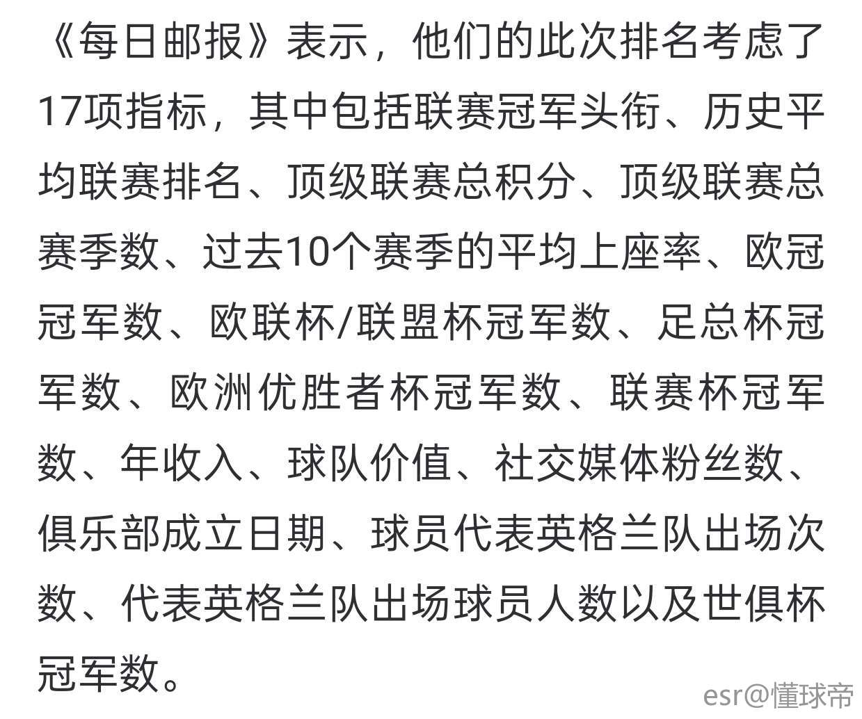 评分标准说的很清楚,有些人自己目光短浅就别出来丢人了,人家排名看的是120年的历史不是20年好吧。多少年了,英格兰前三就是曼联利物浦阿森纳,谁第一有争议,但第三一直是阿森纳