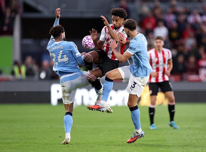 2025年1月14日,英超第21轮,曼城在2-0领先的情况下,比赛最后8分钟被布伦特福德追平。