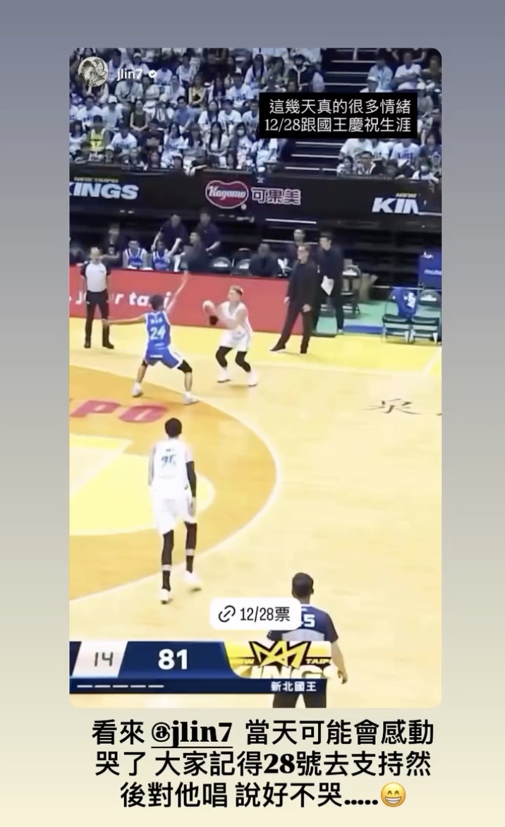 林书豪在个人社交媒体写道:“这几天真的有很多情绪,12/28跟国王庆祝生涯。”
