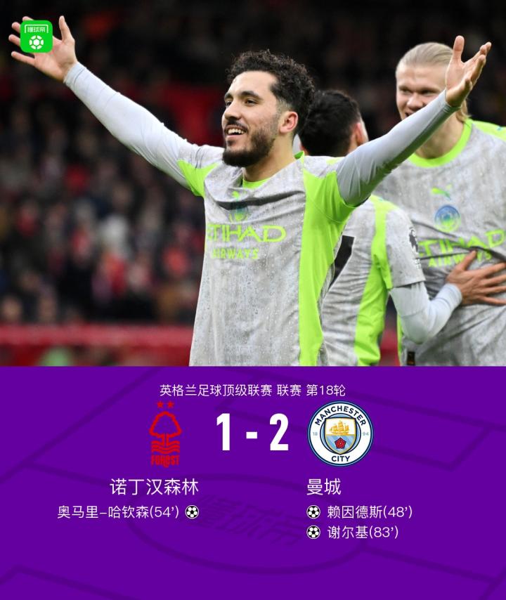 扫描下载懂球帝首页>动态> 剑南春丨曼城客场2-1诺丁汉森林,谢尔基传射,赖因德斯建功