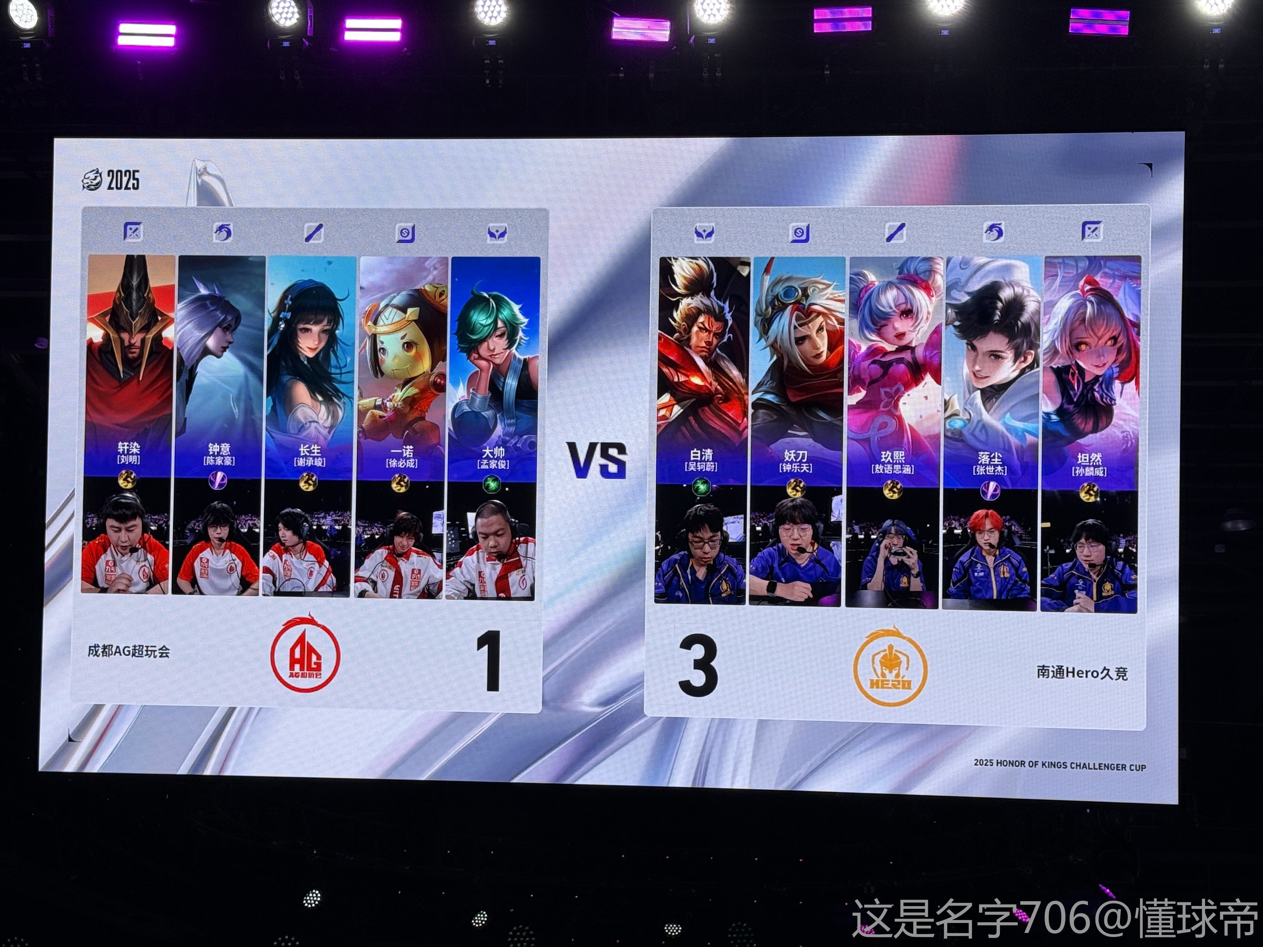 本场比赛,成都AG超玩会在先赢一局的情况下连输四局,最终不敌南通Hero久竞,止步挑战者杯半决赛,无缘继续争夺七连冠。