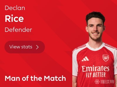 扫描下载懂球帝首页>动态> 客串右后卫,赖斯当选阿森纳vs布莱顿全场最佳球员
