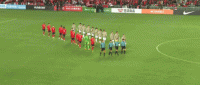 双方球员步入球场,比赛即将打响