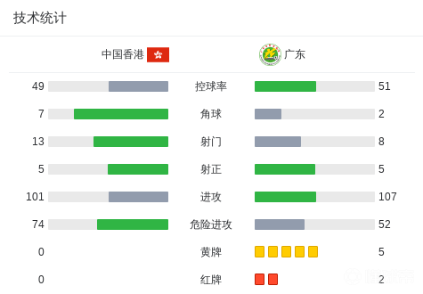 北京时间12月28日,省港杯首回合,中国香港与广东展开对决。上半场,孙铭谦世界波首开记录。下半场,广东凭借陈伟和姜至鹏的进球实现逆转,随后陈伟吃到第二张黄牌被罚下,艾华顿点射扳平比分,黄梓舜也累计两黄被罚下。最终,中国香港2-2战平九人广东。