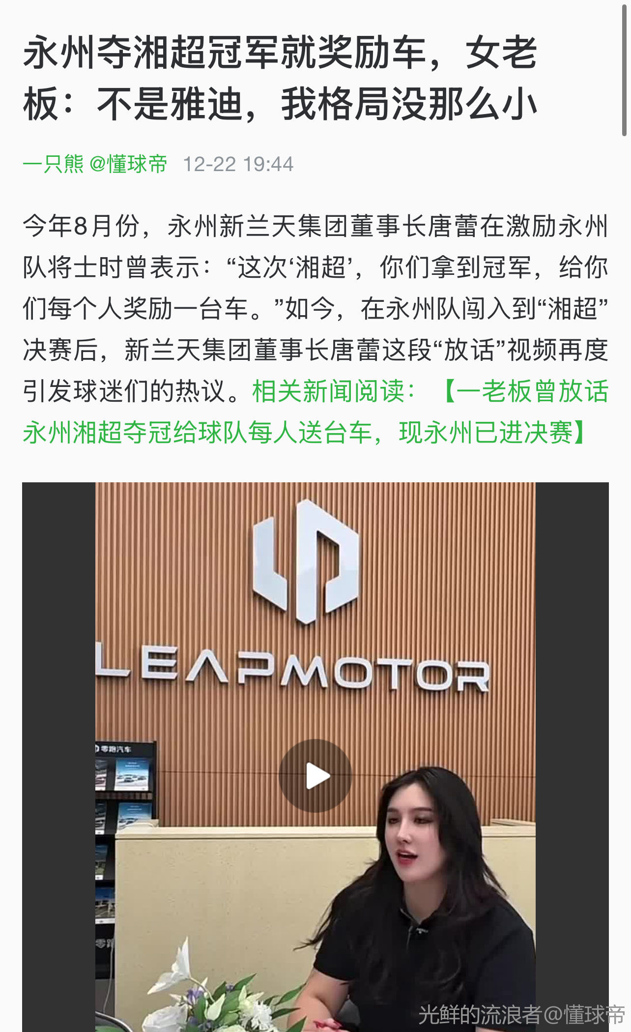【一老板曾放话永州湘超夺冠给球队每人送台车,现永州已进决赛】