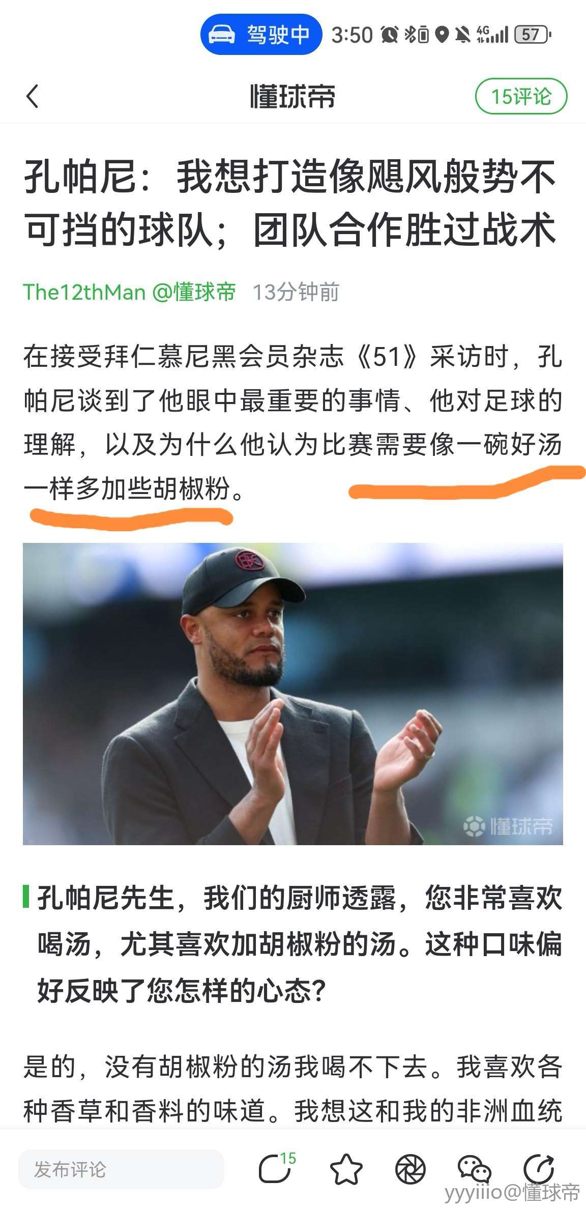 在接受拜仁慕尼黑会员杂志《51》采访时,孔帕尼谈到了他眼中最重要的事情、他对足球的理解,以及为什么他认为比赛需要像一碗好汤一样多加些胡椒粉。