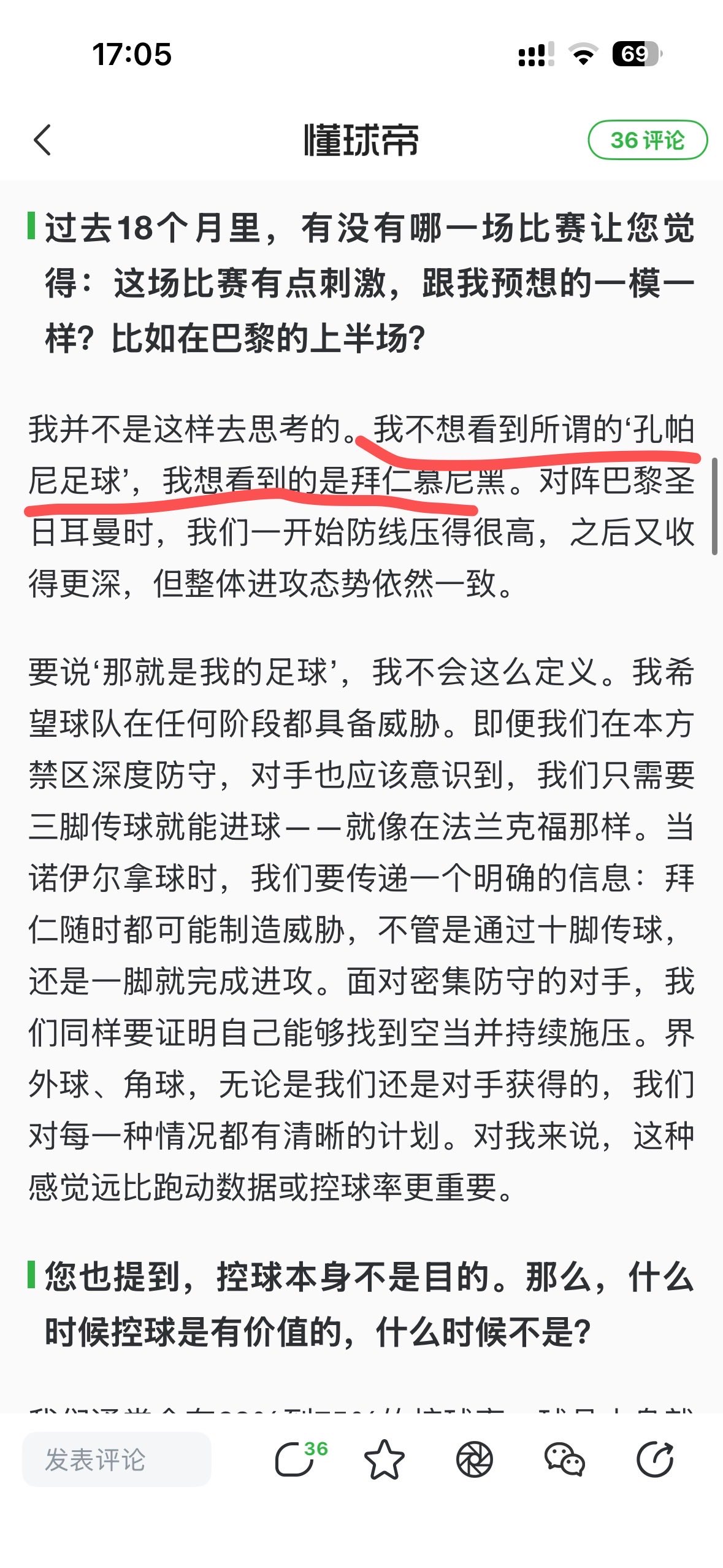 我并不是这样去思考的。我不想看到所谓的‘孔帕尼足球’,我想看到的是拜仁慕尼黑。对阵巴黎圣日耳曼时,我们一开始防线压得很高,之后又收得更深,但整体进攻态势依然一致。