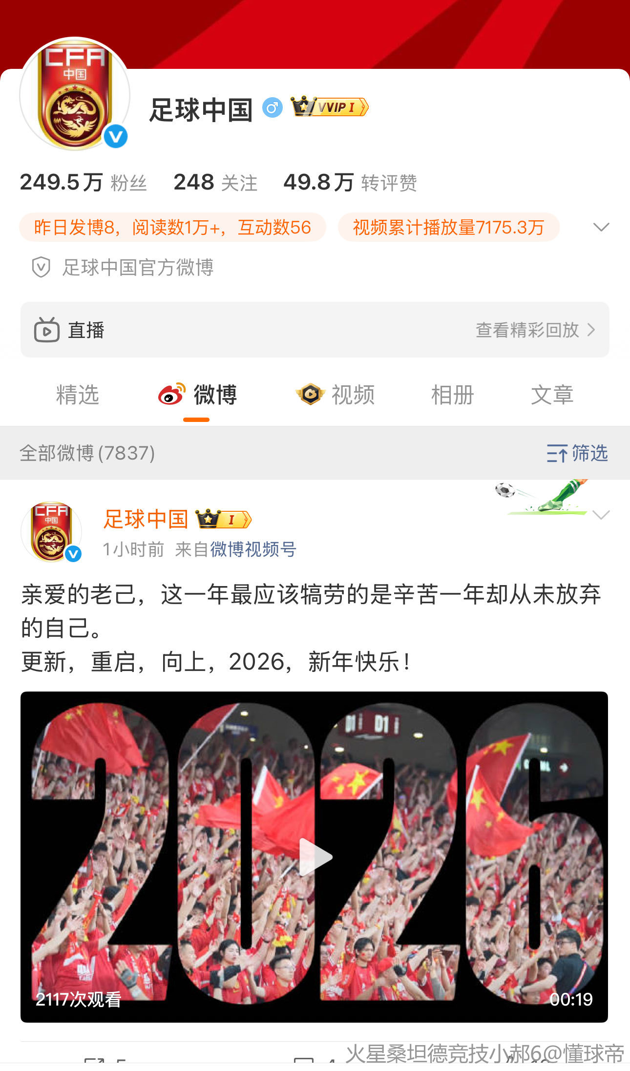 最后祝大家元旦快乐,新年新气象,2026年的中国足球,热爱中国足球的球迷们我们继续不见不散。