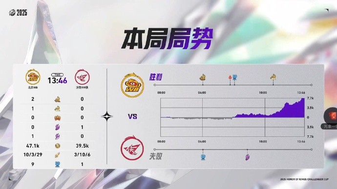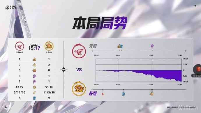 本局前期双方较为均势,北京WB在10分钟后逐渐取得了小优,随后暖阳曜关键抢龙,北京WB顺势拿下了第二局比赛的胜利。