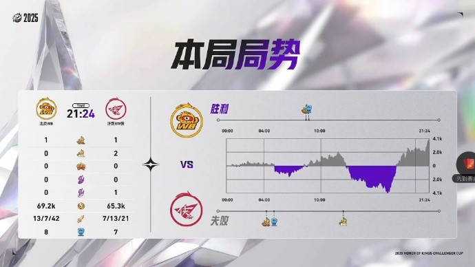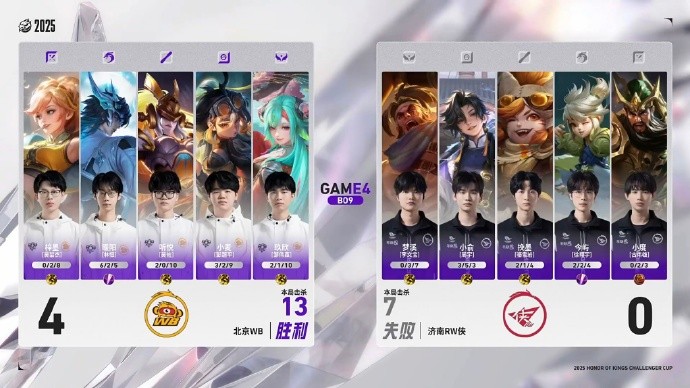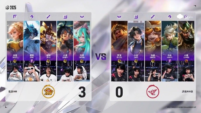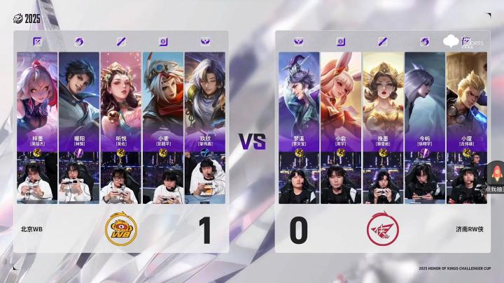 北京时间1月2日,2025王者荣耀挑战者杯决赛。北京WB迎战济南RW侠,济南RW侠自2019年后再进决赛。上半场比赛结束,北京WB暂时4-0领先济南RW侠。